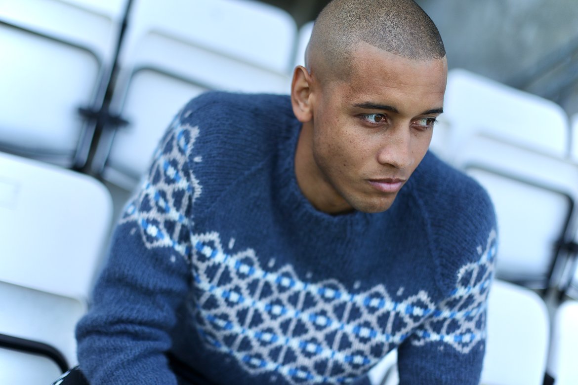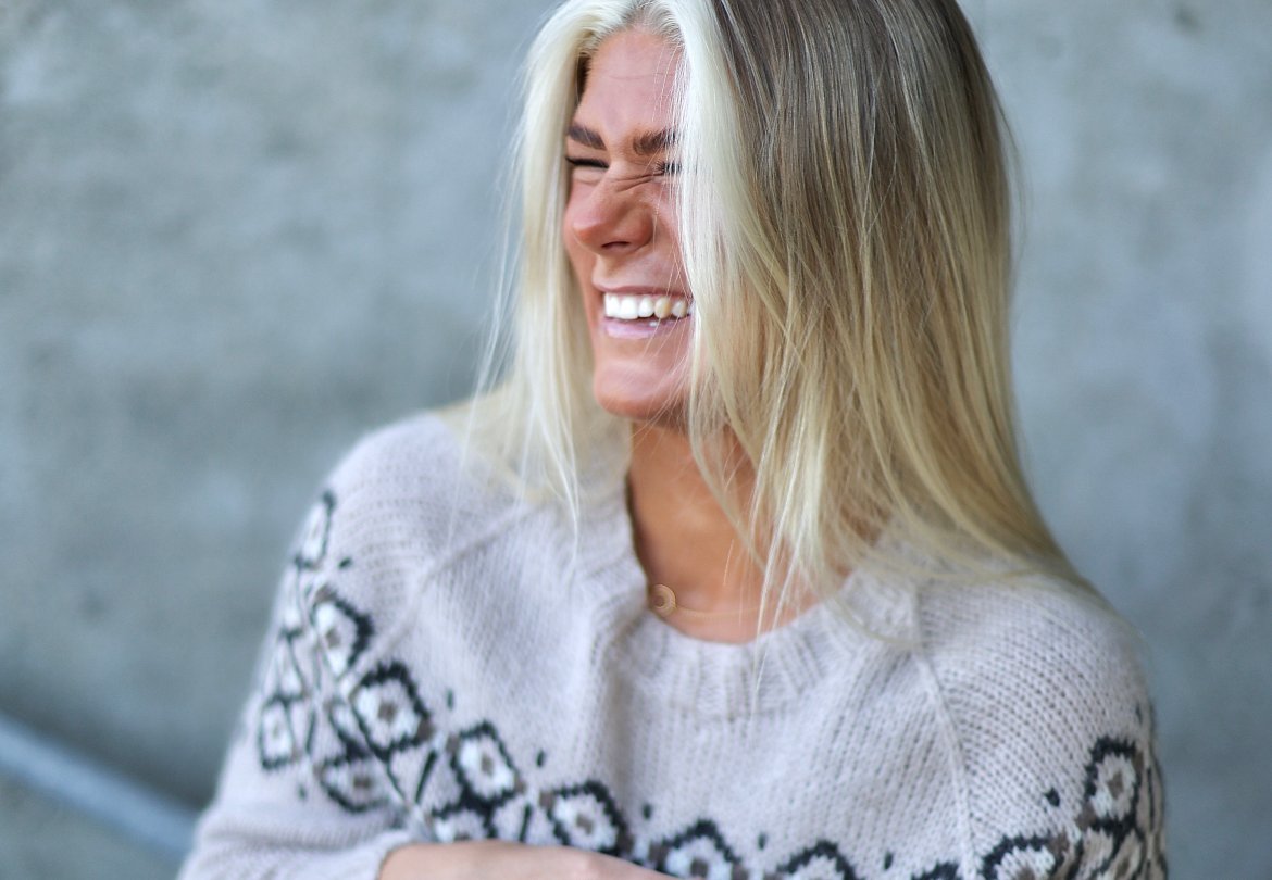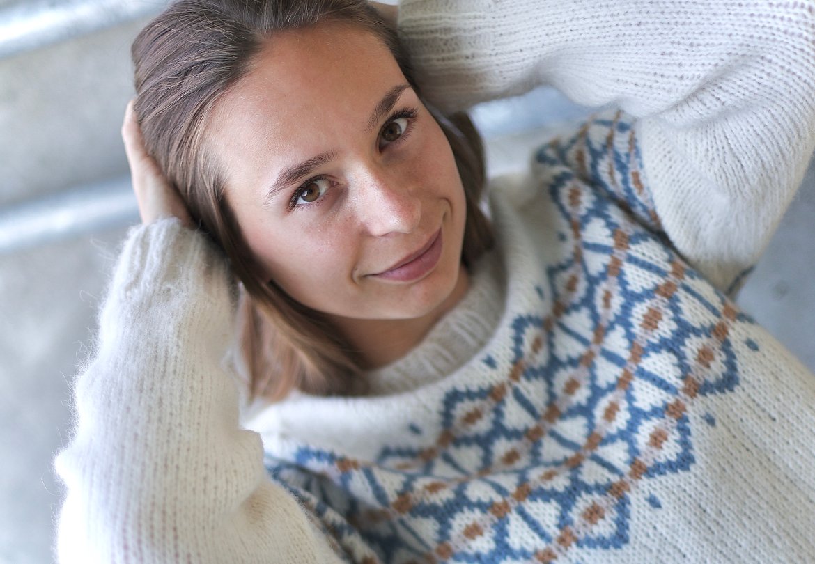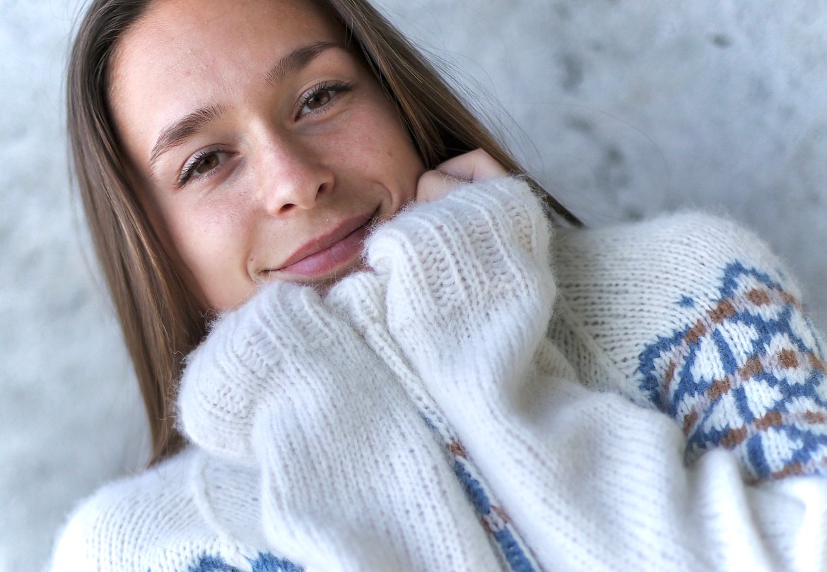 Cross-genseren finnes i to versjoner - en i tradisjonell merinoull og en i enda mykere alpakka. Kryssene i genseren er både inspirert av kors-formen, men har også symbolikk rundt det å krysse grenser og hente seg inn igjen når man opplever å miste kontroll.