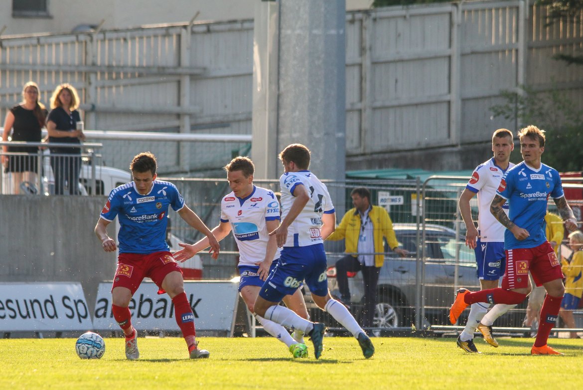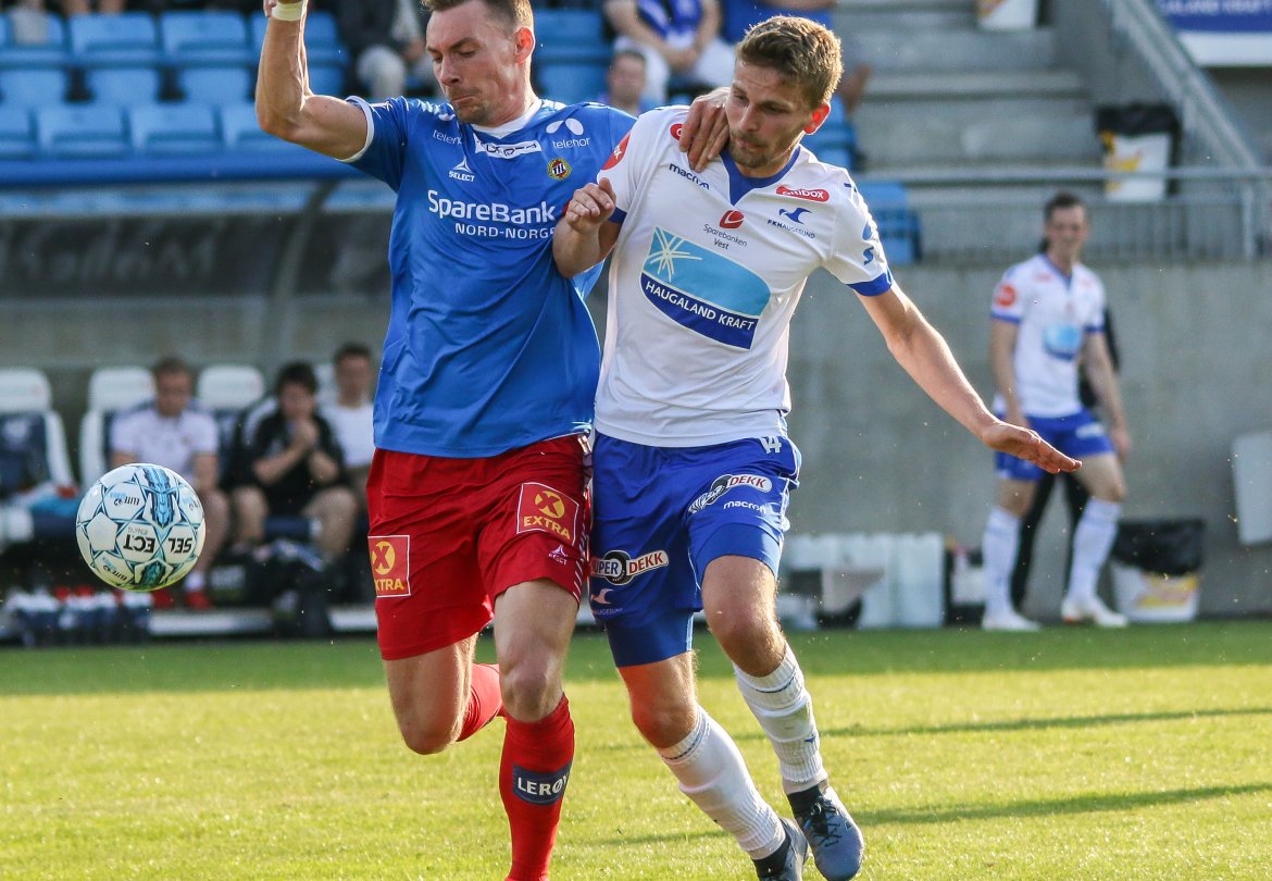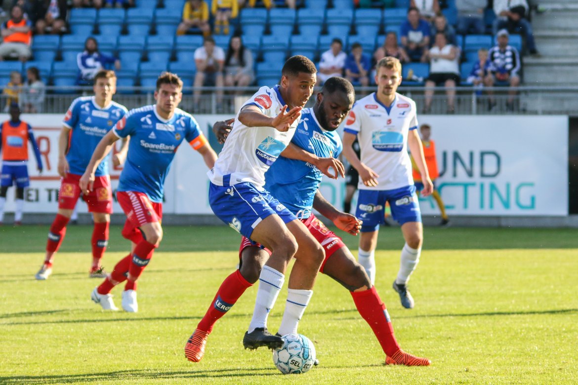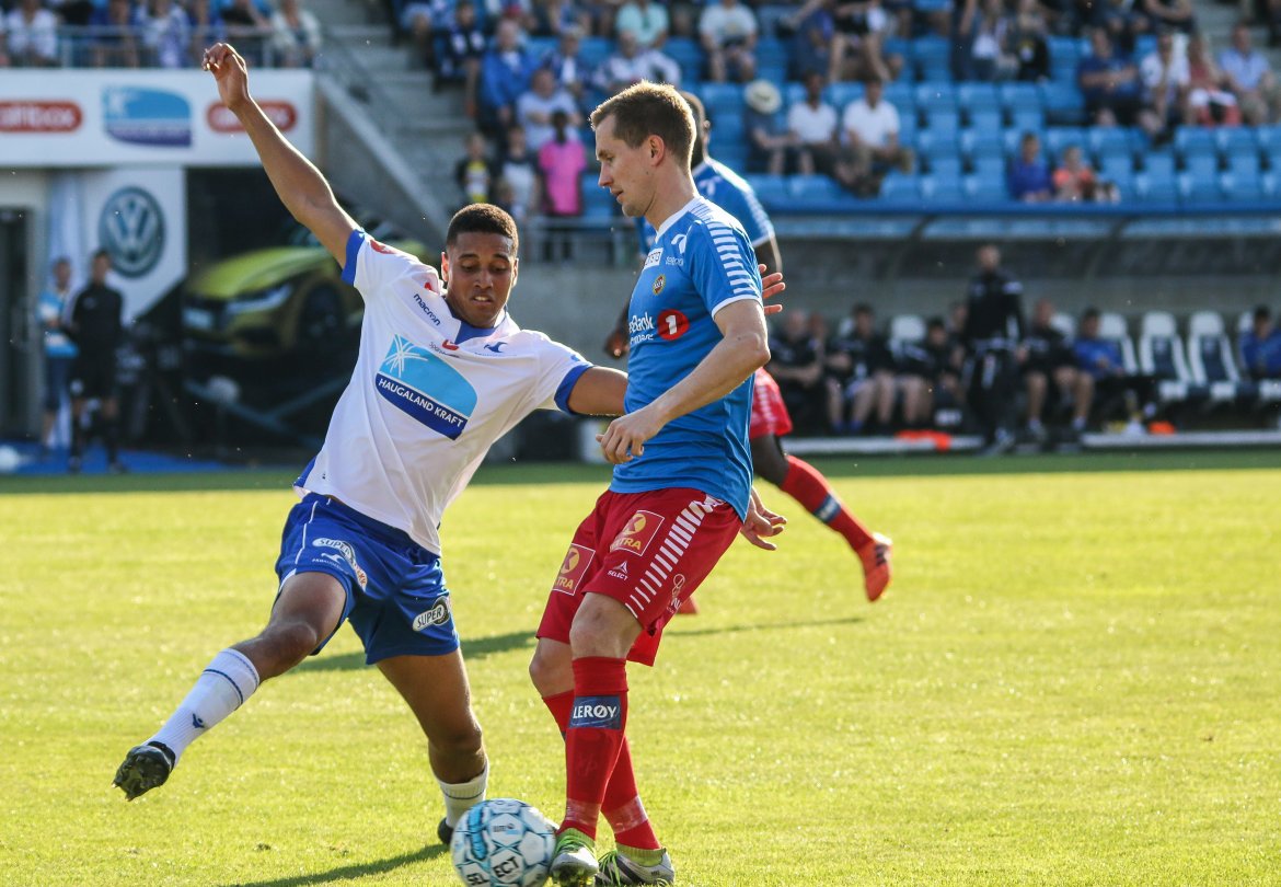 På plass på Haugesund Stadion var også fotograf Kjell Bua som tok følgende blinkskudd fra kampen i sommervarmen. Se galleriet nederst.