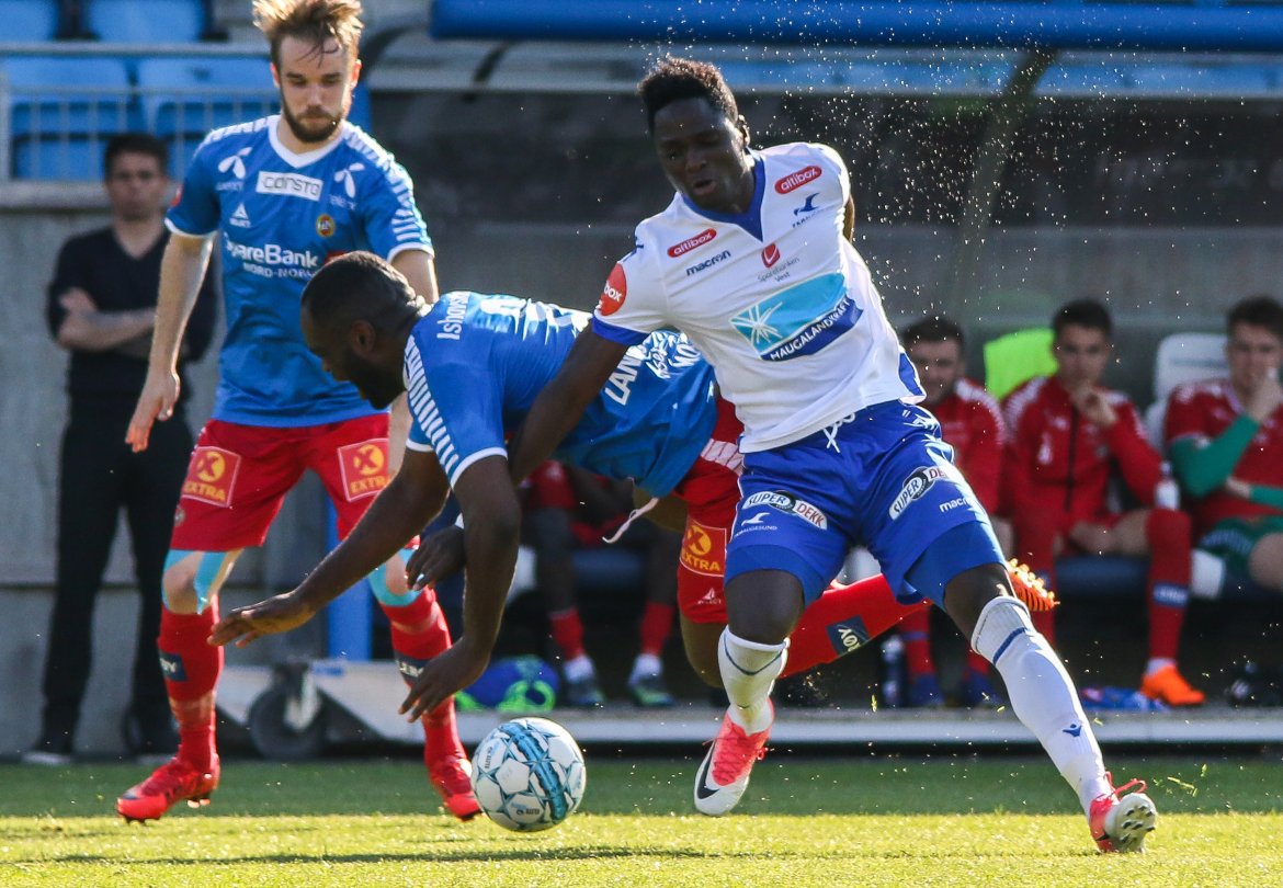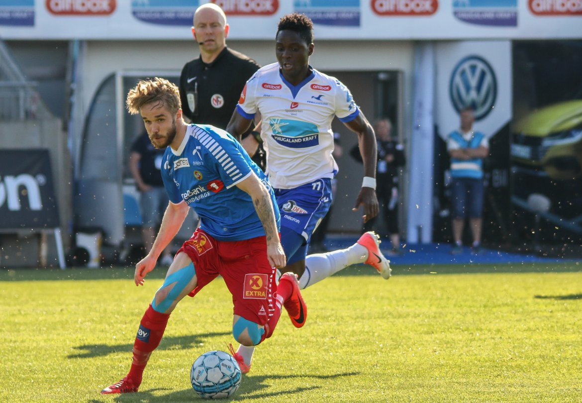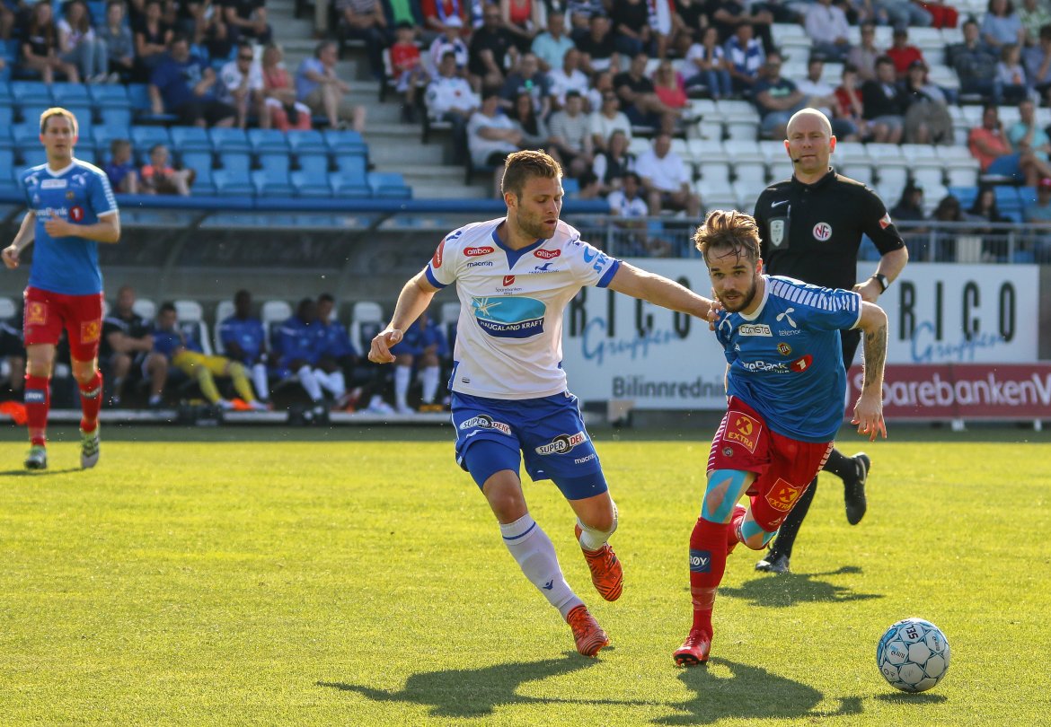 På plass på Haugesund Stadion var også fotograf Kjell Bua som tok følgende blinkskudd fra kampen i sommervarmen. Se galleriet nederst.